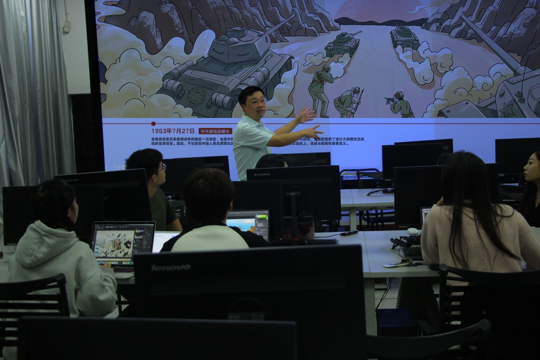 本次活动适逢抗美援朝胜利70周年,学院徐鸣教授带领四十余名在校生,耗时8个多月创作完成长达70米的《抗美援朝手绘长卷》,师生的笔尖绘制了在抗美援朝战争中的50个重要事件,用艺术的形式向烈士英雄们致敬,弘扬伟大的抗美援朝精神。10月25日在纪念中国人民志愿军抗美援朝出国作战73周年当天在红网、时刻新闻发布,学习强国、人民日报、央视频、中国新闻网、人民视频、潇湘晨报,酷爱成人网