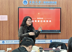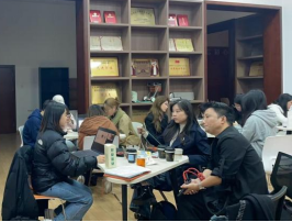 3月28日下午,视传2202班在艺术楼四家会议室成功开展了一场特别的课堂交流活动。毛寒老师邀请了来自阿克苏市国学书院的负责人田苗女士、长沙玥达创始人刘雅辉女士、及古家烟花首席设计师赵保先先生走进包装设计课堂,与同学们面对面交流,对大家的包装设计方案进行深入点评和指导。