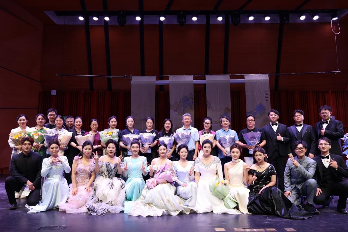 5月27日晚,“声潨”中国古诗词艺术歌曲音乐会在音乐厅诗意绽放。这场别具匠心的音乐会创新性地将古典诗词的文学意境与音乐语汇相融合,通过声乐演唱、器乐伴奏,为观众打造了一场沉浸式的传统文化美学体验。从先秦《越人歌》的质朴深情,到唐宋名家李白、杜甫、李煜、苏轼的传世之作,再到元代散曲的悠远意境,15首作品串联起中国诗词的千年风华。音乐专业学子以精湛的技艺和深刻的理解,让千年古诗在当代舞台上焕发新生,展现了传统文化创造性转化的无限可能。