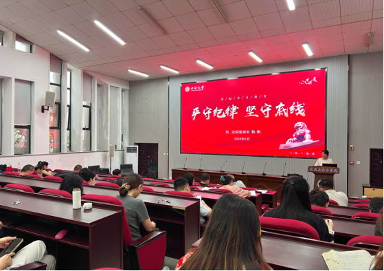 根据学校党纪学习教育实施方案和学校纪委“六个一”工作安排,为进一步推进全体教职员工学纪、知纪、明纪、守纪。6月28日,校纪委第二纪检监察室主任杨帆来学院开展“一院一宣讲”专题宣讲报告。会议由院党委书记柯朝晖主持,学院全体教职工参加。