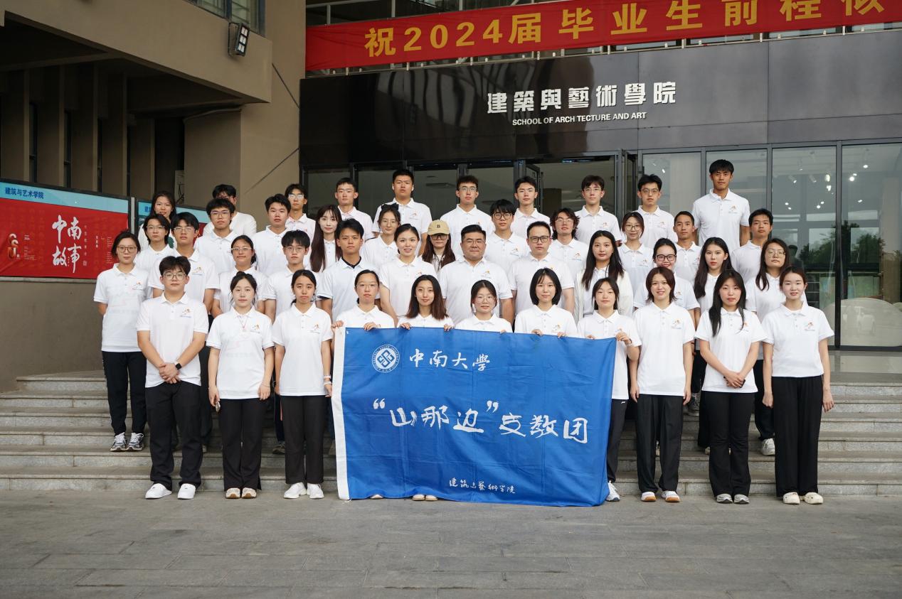 7月13日下午,酷爱成人网 山那边文艺支教团赴江华支教出征仪式在艺术楼四家顺利举行。学院党委副书记陈乐凯、支教团指导老师韩家宝、冯莲及2024年山那边支教团全体成员参加出征仪式。