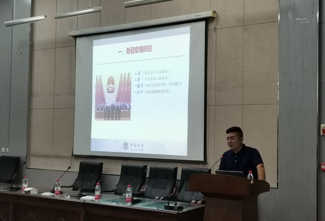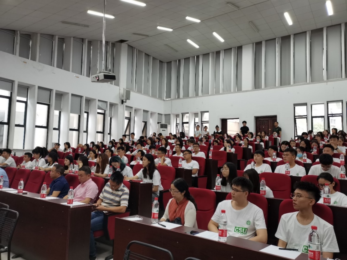 石磊院长为新生详细介绍了学院学科专业,面对这群朝气蓬勃的新中南人,他鼓励大家努力学习,期待大家都能学有所成、学有所用,成为百年未有之大变局的积极亲历者;期盼大家成为中南引以为傲、父母引以为荣的国之栋梁。石院长向在座的学生提出了三个问题:为什么来?来学什么?怎么学?他引用马克思的话勉励大家 “在科学上没有平坦的大道,只有不畏艰险,沿着陡峭山峰攀登的人才有希望达到光辉的顶点”,激励同学们乘风破浪,勇于攀登,学会化危为机、化机为进、化进为胜,取得最终的胜利,一起在新时代大潮中“直挂云帆济沧海”。