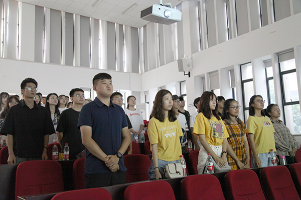学子李利民、张维斯、孟乡、曹殷姿、陆思童、张镓铄、吴赛、张逸帆深情地演唱了一首令人心生自豪的歌——《我和我的祖国》, 随后又演唱了《共筑中国梦》,唱出了对祖国母亲的热爱。