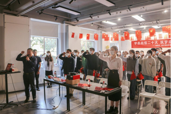 在铿锵有力的话语、红色经典的旋律中,解明镜副院长带领与会党员重温入党誓词,感悟入党初心,并就“学习贯彻党的二十大精神”讲授专题党课。解院长强调,我们必须原原本本学,学深悟透二十大报告中的新观点、新论断、新思想,用自己的专业知识,发挥青年学子的青春光热,践行青年党员的使命担当。