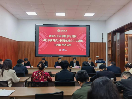 学习贯彻习近平新时代中国特色社会主义思想主题教育动员会在艺术楼四家会议室召开。学校学习贯彻习近平新时代中国特色社会主义思想主题教育第三指导组组长赵永正,学院领导班子成员,党支部书记,副科级以上干部及党员代表参加会议。会议由学院党委书记柯朝晖主持。