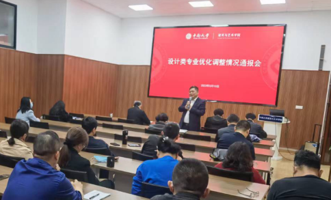 学院根据学习贯彻习近平新时代中国特色社会主义思想检视整改工作、校内巡视集中整改要求和进一步落实学校“四个转型”战略发展要求,结合学院学科专业发展规划和优化调整需要,更好凝练专业特色,服务经济时代发展需求和技术变革需要,根据4月份学院党政联席会议关于专业优化调整工作讨论形成的决议,5月10日学院召开了“设计类专业优化调整情况通报会”。