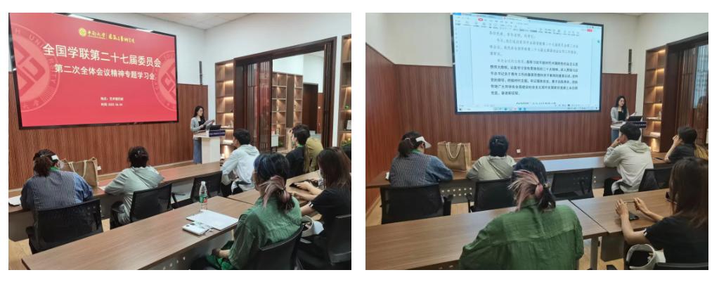 学生会在新校区艺术楼四家和铁道校区创南208召开全国学联第二十七届委员会第二次全体会议精神专题学习会议,全体学生会干部参会。