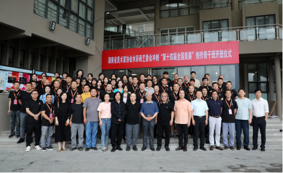 教授蒋烨,湖南省美术家协会副秘书长马志军以及来自于湖南省美术家协会下属中国画艺术委员会、油画艺术委员会、版画艺术委员会、陶瓷艺术委员会、少儿·连环画·插图装帧艺术委员会、民族美术艺术委员会、设计艺术委员会、漫画艺术委员会、综合材料艺术委员会、实验艺术委员会、新文艺群体联络委员会、美术教育委员会、策展艺术委员会、漆画艺术委员会、动漫艺术委员会、美术理论委员会的领导和嘉宾与来自全省各地的50余名创作骨干参加了开班仪式,仪式由湖南省美术家协会水彩画艺术委员会副主任李洁主持。