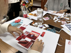 拼贴过程中,同学们相互协作,紧密合作,共同完成了小组作品。大家不仅互相帮助,还不断分享着彼此的想法,并展开深入的讨论。大家在工作坊协同努力,享受着创造的乐趣,整个活动充满了活力和快乐。