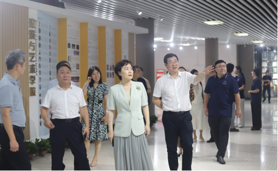 李爱武厅长一行首先参观了学院文化艺术长廊,对于学院文化艺术长廊的建设成果给予了高度评价,对学院浓厚的艺术氛围充分肯定,就学院专业构成和学科特色等与学院有关负责人进行了沟通交流。